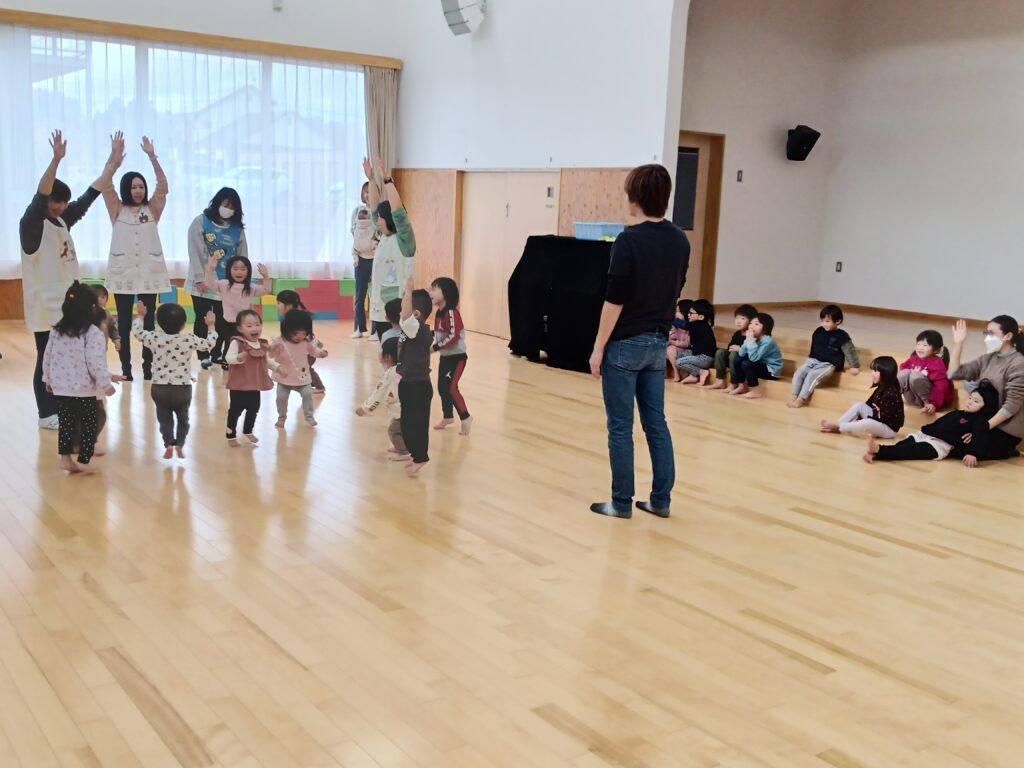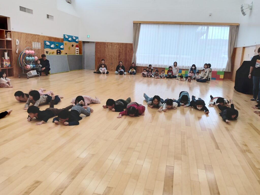 音楽に合わせて、いろいろな動きを楽しんでいます。