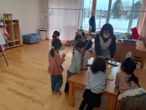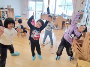 うさぎ組、ぱんだ組、きりん組のおともだちは、お別れ会の練習や