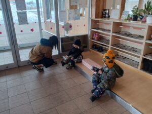 みかんのおともだちは、自分で靴を履いてきゃはんをあげられます。