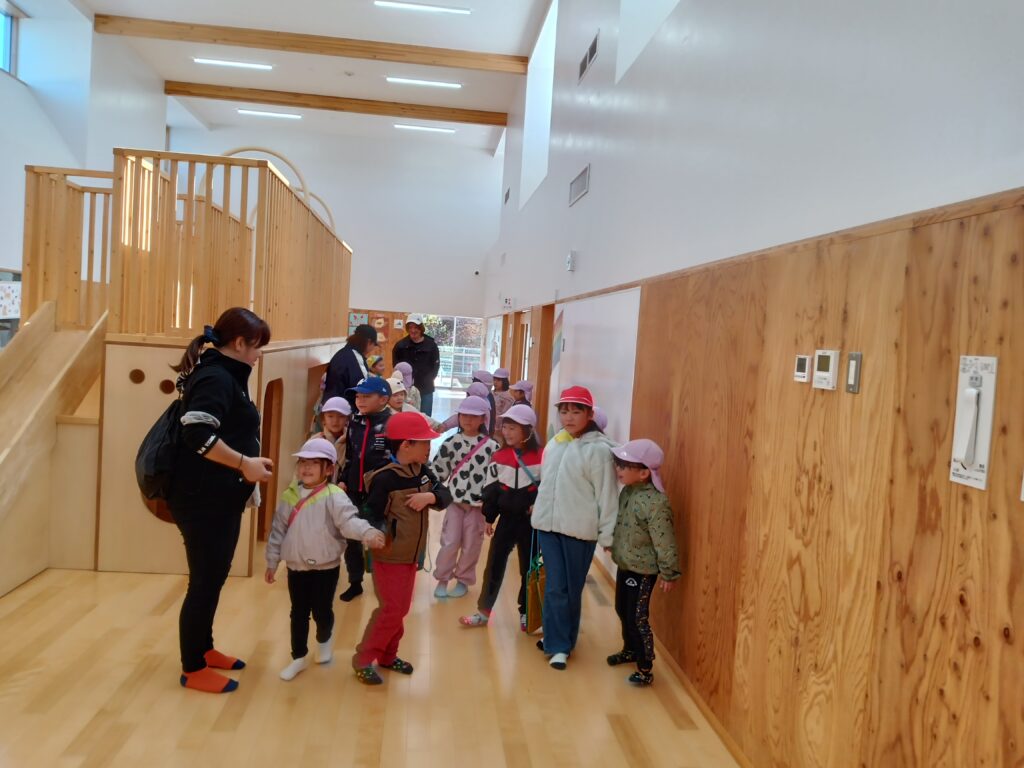 きりん組のお友だちを誘いに久しぶりに園に入って、懐かしそうに園内を見回していました。
