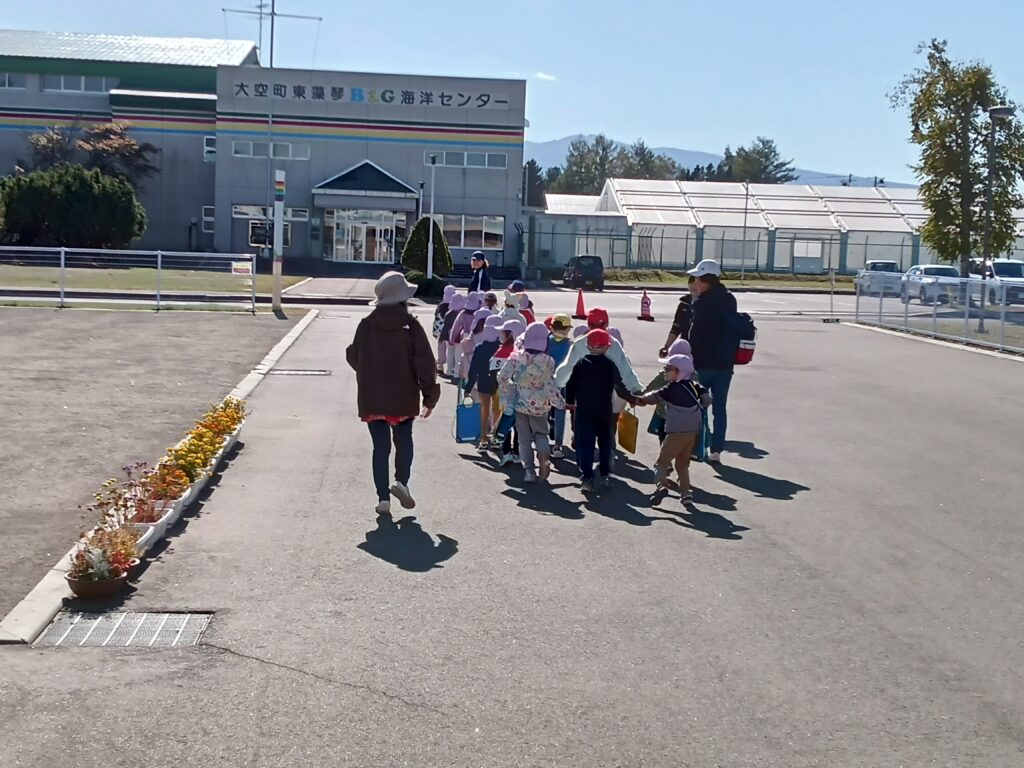 今日の活動は、隣の公園でドングリ拾いを一緒にします。