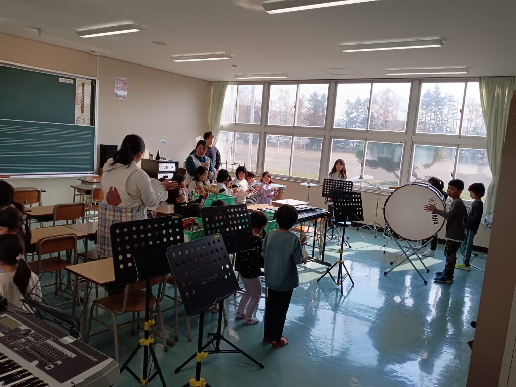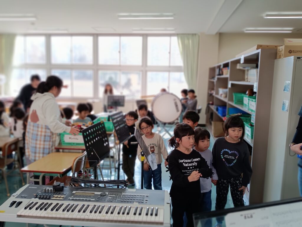 その練習に向けて、小学生のお兄さんお姉さんたちが、学芸会に向けてどのように楽器演奏を練習しているのか勉強するために、2年生の練習風景を見させてもらいました。