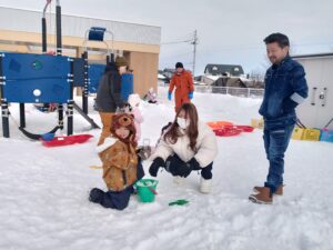 みんなニコニコ 参観日 昨日から始まりました参観日は、今週末まで続きます。 今日もお外で、色水で雪遊び、かまくらづくり、そりすべり、などなど おうちの人と一緒に遊べて、寒さを感じず、みんなニコニコです。 そして、お昼の給食も一緒に食べます。