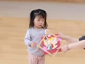 クラスの代表のおともだちがひな祭りの製作の紹介をしてくれました。