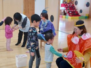 今日は、お遊戯室でひな祭り集会を行いました。