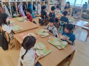 「お花みたい かわいいね!」と言いながら、みんな楽しそうに食べていました。