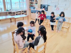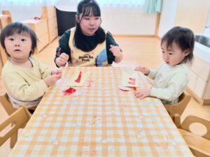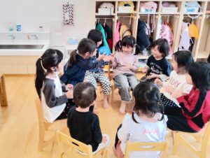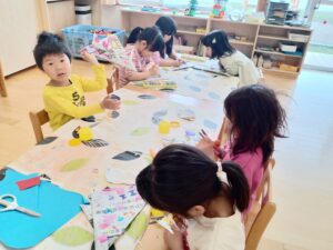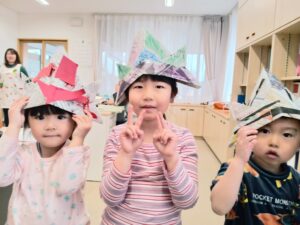 今日は園内で! 今日の各クラスは園内で活動しました。 さくら組とみかん組は、こどもの日にちなんだ製作活動を! にじ組は爆弾ゲーム、爆発したおともだちは「カリスマック」を踊っています。 いちご組はプーさんと遊びました。