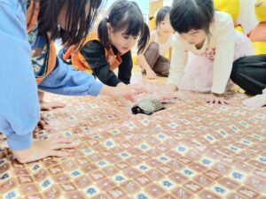 昨日夕方に、カメの水槽を洗っていると、先生がこどもたちにもっとカメに